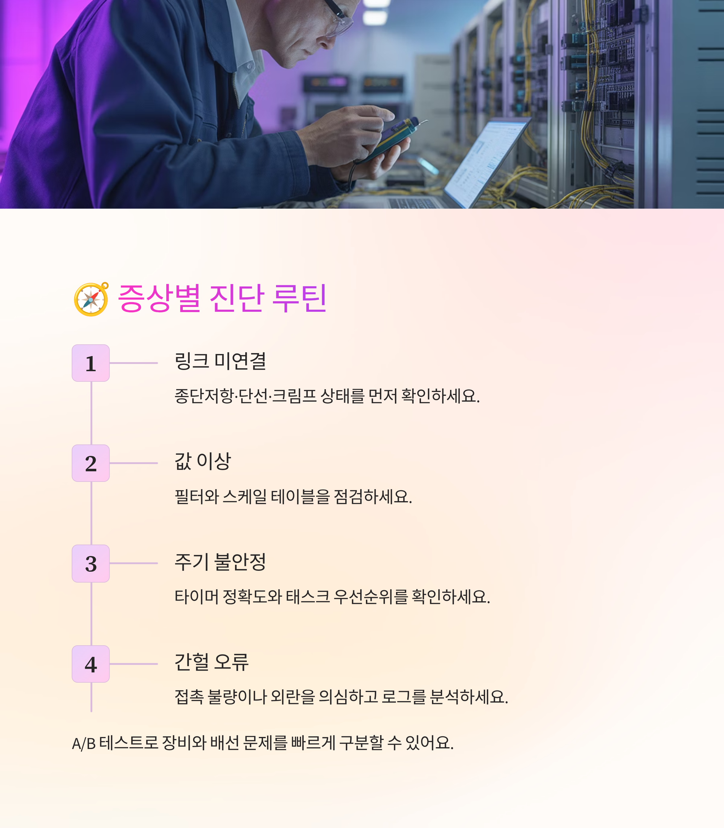 🧭 진단 루틴: 증상별로 순서만 고정해요