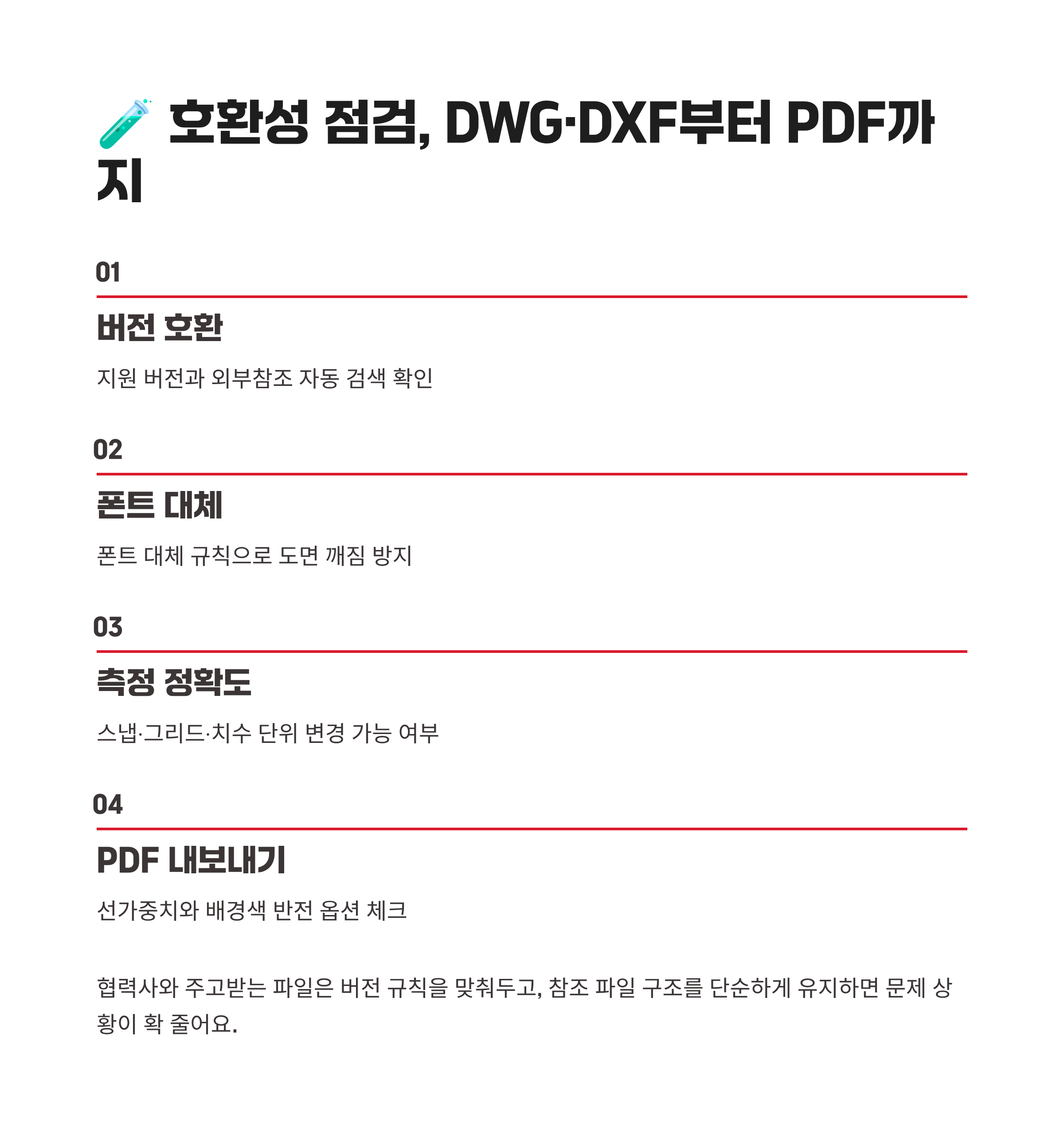 🧪 호환성 점검, DWG·DXF부터 PDF까지
