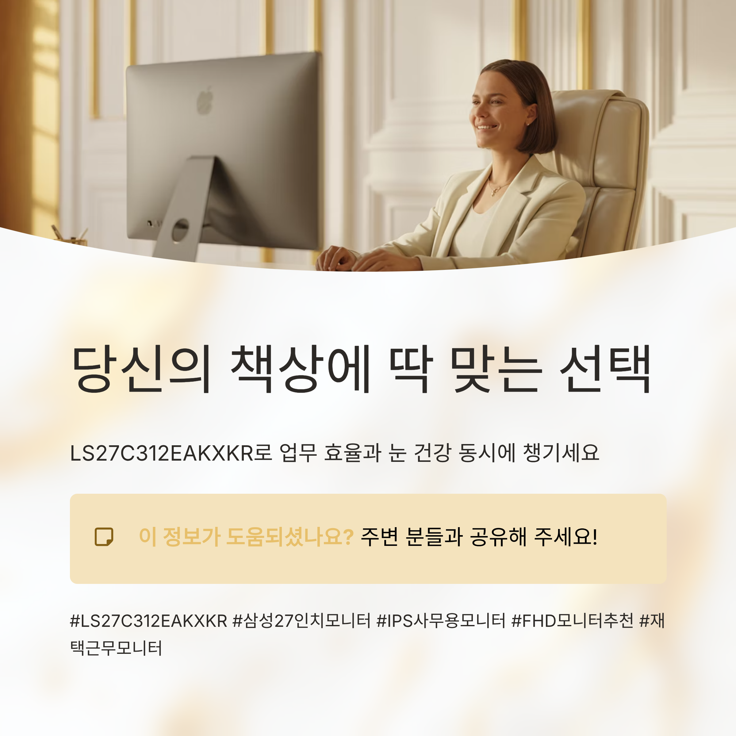 색 재현율이 더 높은 전문가용 모니터와 비교하면 분명 차이는 있지만, 가격까지 함께 생각하면 이 정도 IPS FHD 구성이 가장 현실적인 타협점이에요. 온라인 쇼핑, 유튜브, 간단한 사진 보정, 프리젠테이션 제작 정도를 모두 커버할 수 있는 ‘만능형 색감’이라고 보면 편해요. 이런 균형 덕분에 회사나 학원, 공공기관에서 LS27C312EAKXKR급 모니터를 다량 도입하는 경우가 많은 것 같아요.