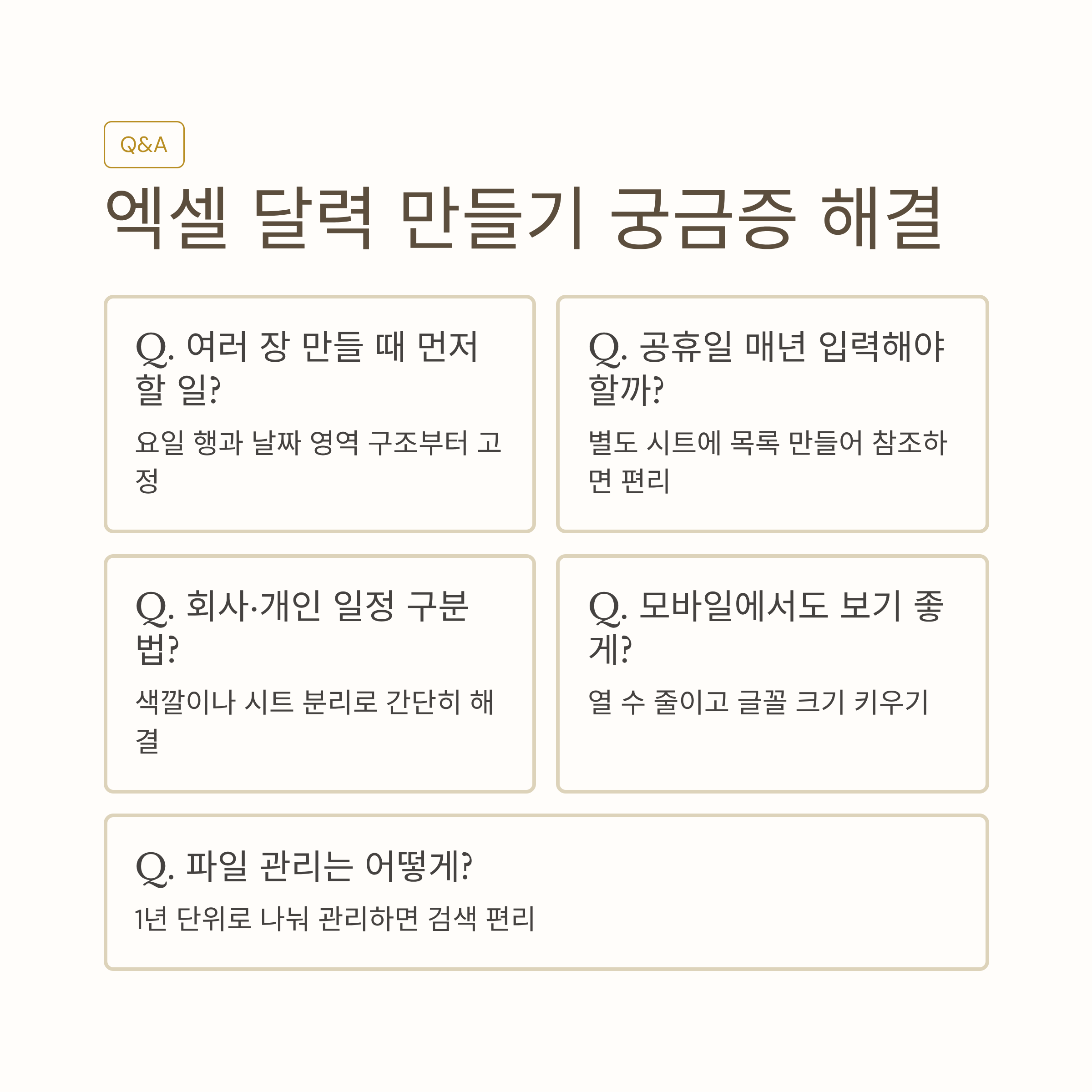 ❓ 엑셀달력만들기 묻고답하기 Q&A