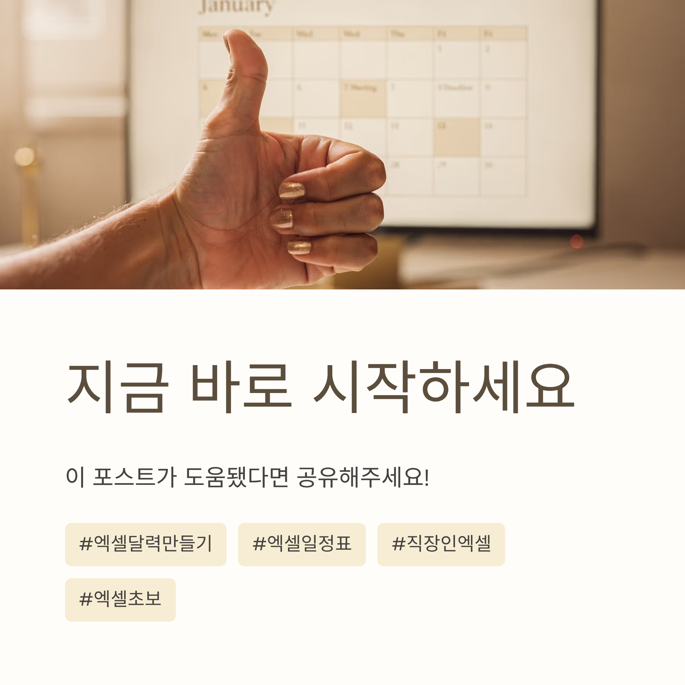 처음에는 이렇게 표를 설계하고 서식을 맞추는 과정이 조금 번거롭게 느껴질 수 있어요. 그런데 한 번만 시간을 들여 틀을 만들어 두면, 다음 달부터는 날짜만 바꿔도 금방 완성되는 걸 보고 생각보다 간단하다는 걸 느끼게 되실 거예요. 특히 팀이나 가족과 일정을 공유해야 하는 분들은, 각자 메모를 적을 공간까지 고려해서 넉넉하게 만드는 게 중요해요. 오늘 소개해 드린 흐름대로 한 번만 차근차근 따라 해 보시고, 본인에게 맞게 조금씩 수정해 나가 보세요. 어느 순간부터는 매달 새 양식을 만드는 시간이 눈에 띄게 줄어들 거예요.