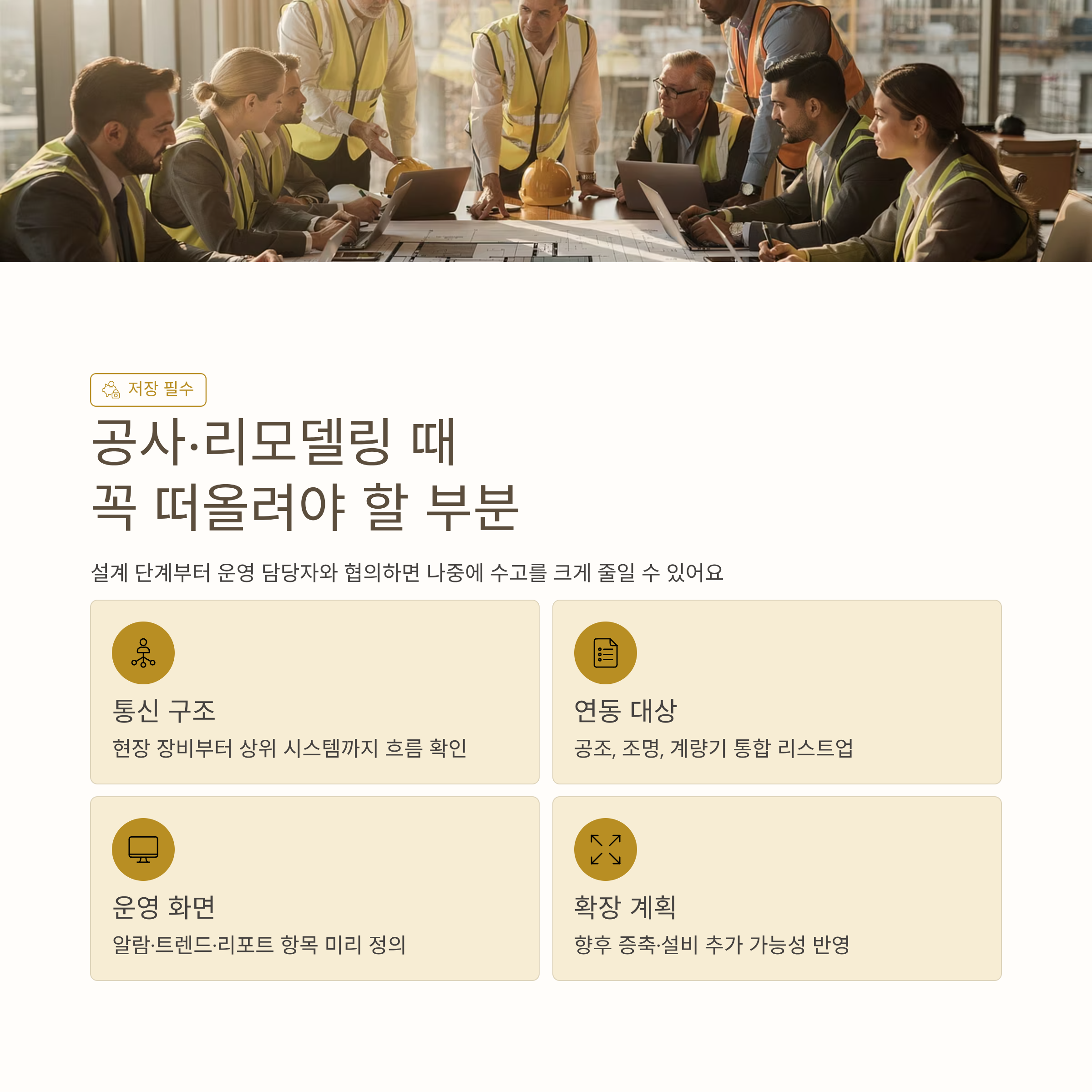 실제 공사 단계로 들어가면 도면, 공정, 예산 등 챙겨야 할 것이 너무 많아서 통신 규격은 뒤로 밀리기 쉬워요. 하지만 이 부분을 대충 넘어가면 나중에 설비를 추가하거나 교체할 때 예상치 못한 제약이 생기는 경우가 진짜 많아요. 처음 협의할 때부터 어떤 규칙으로 설비를 묶을지 기본 방향을 잡아두면 큰 도움이 돼요.
