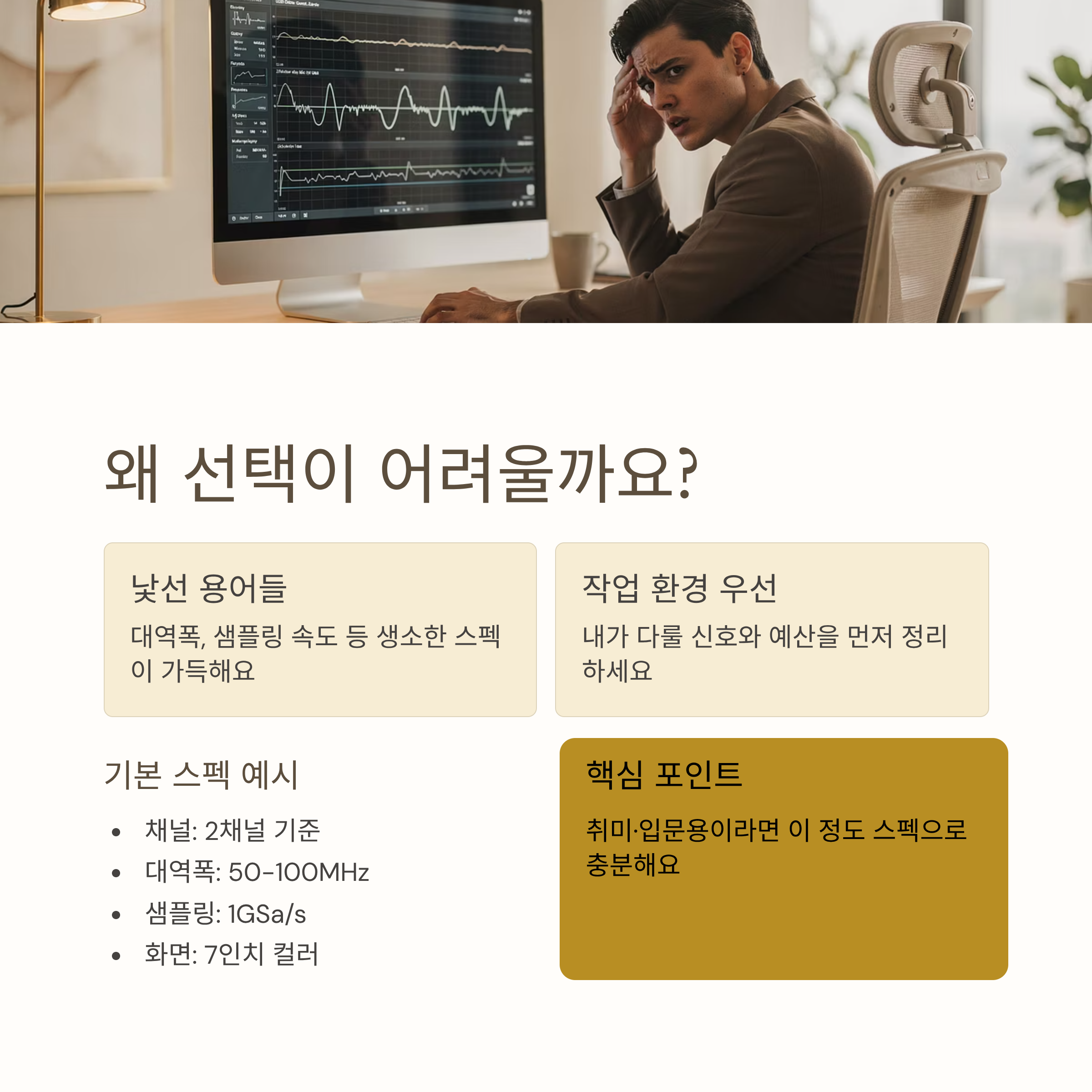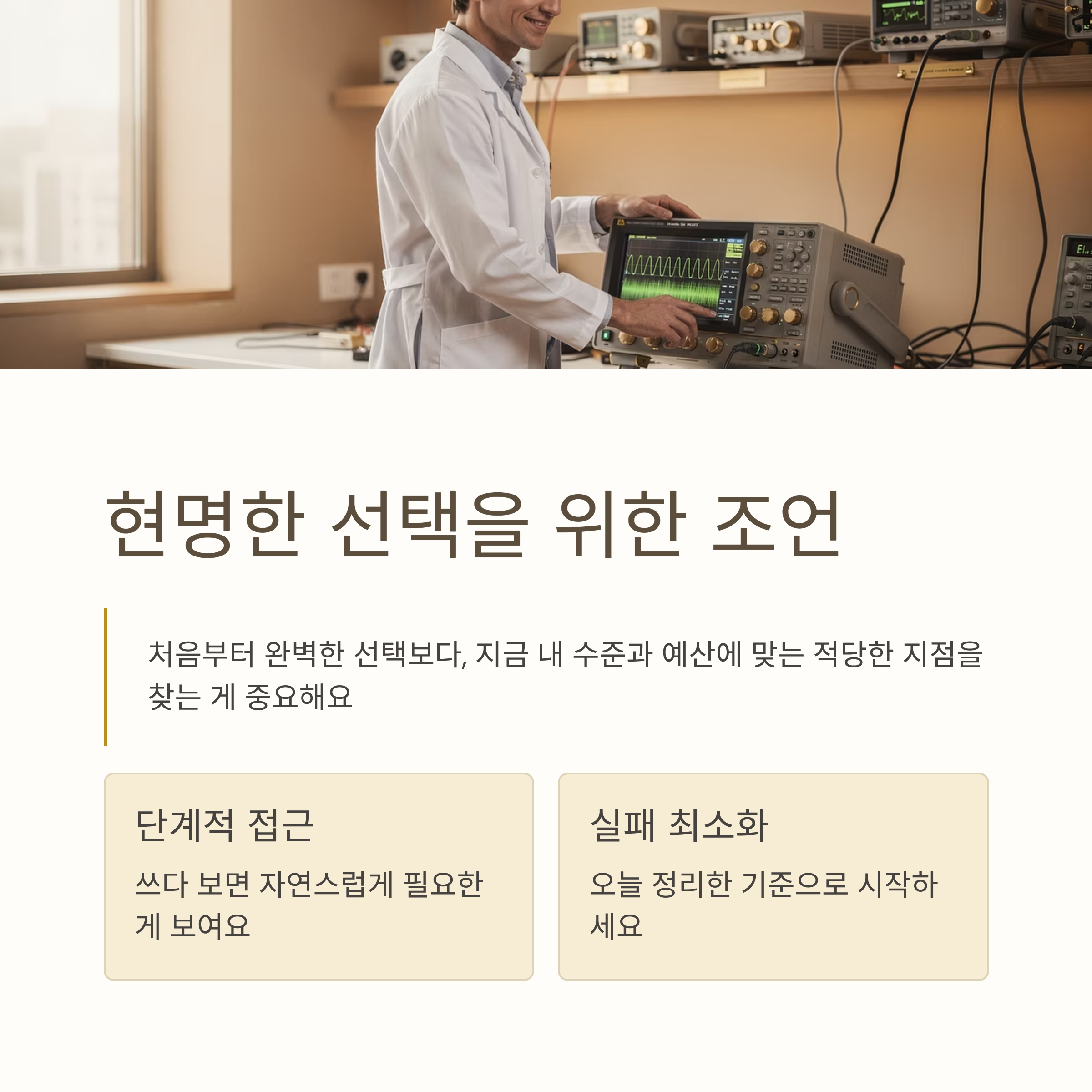 수치만 보고 결정하면 나중에 "이 정도만 더 올릴 걸" 하는 아쉬움이 남는 경우가 은근히 많아요. 반대로 너무 높은 스펙을 욕심내서 예산을 다 써버리면, 정작 프로브나 전원 장비를 못 챙겨서 불편해지기도 하고요.