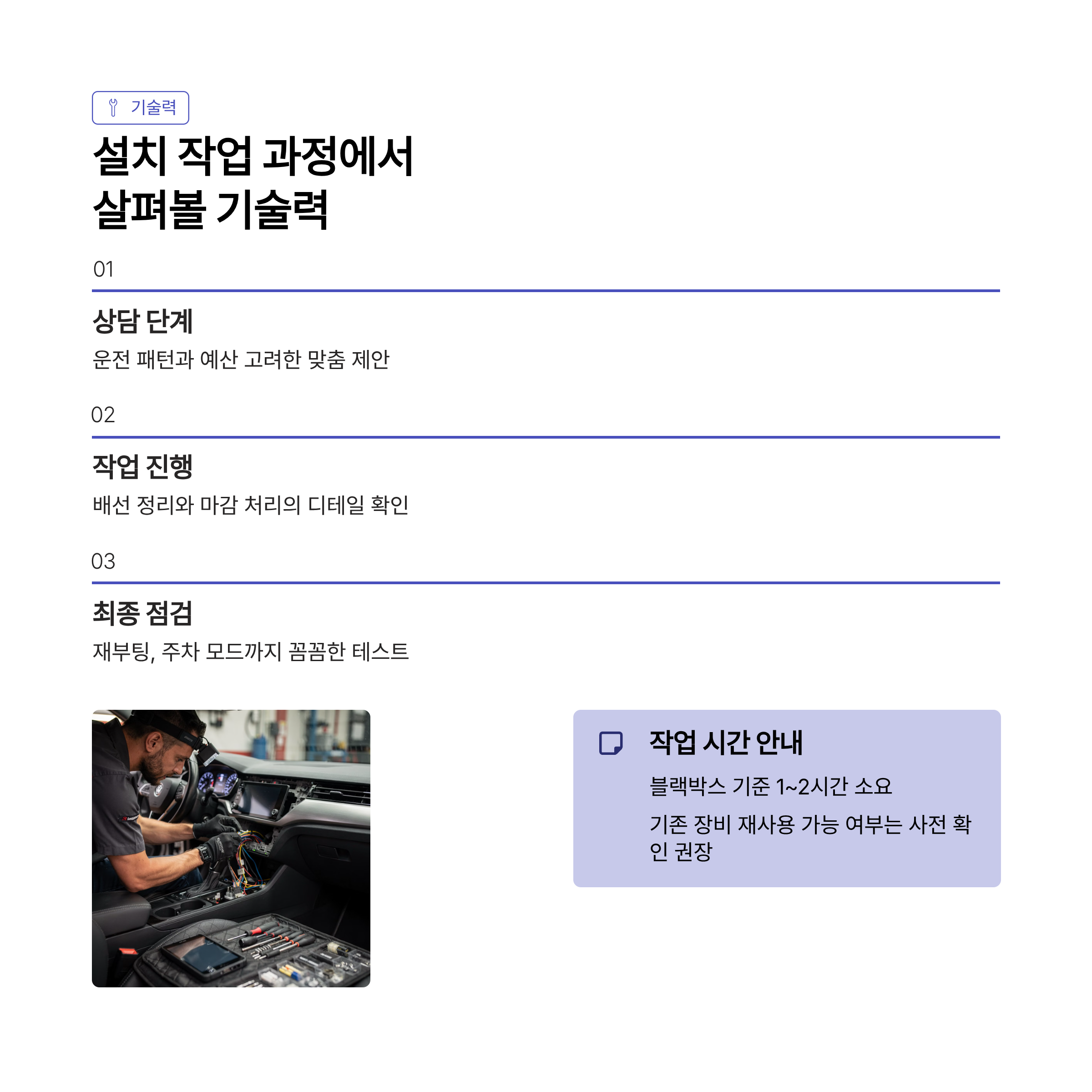 | 포인트 2 | 교체된 부품의 브랜드와 보증 조건을 꼭 메모해두기 |