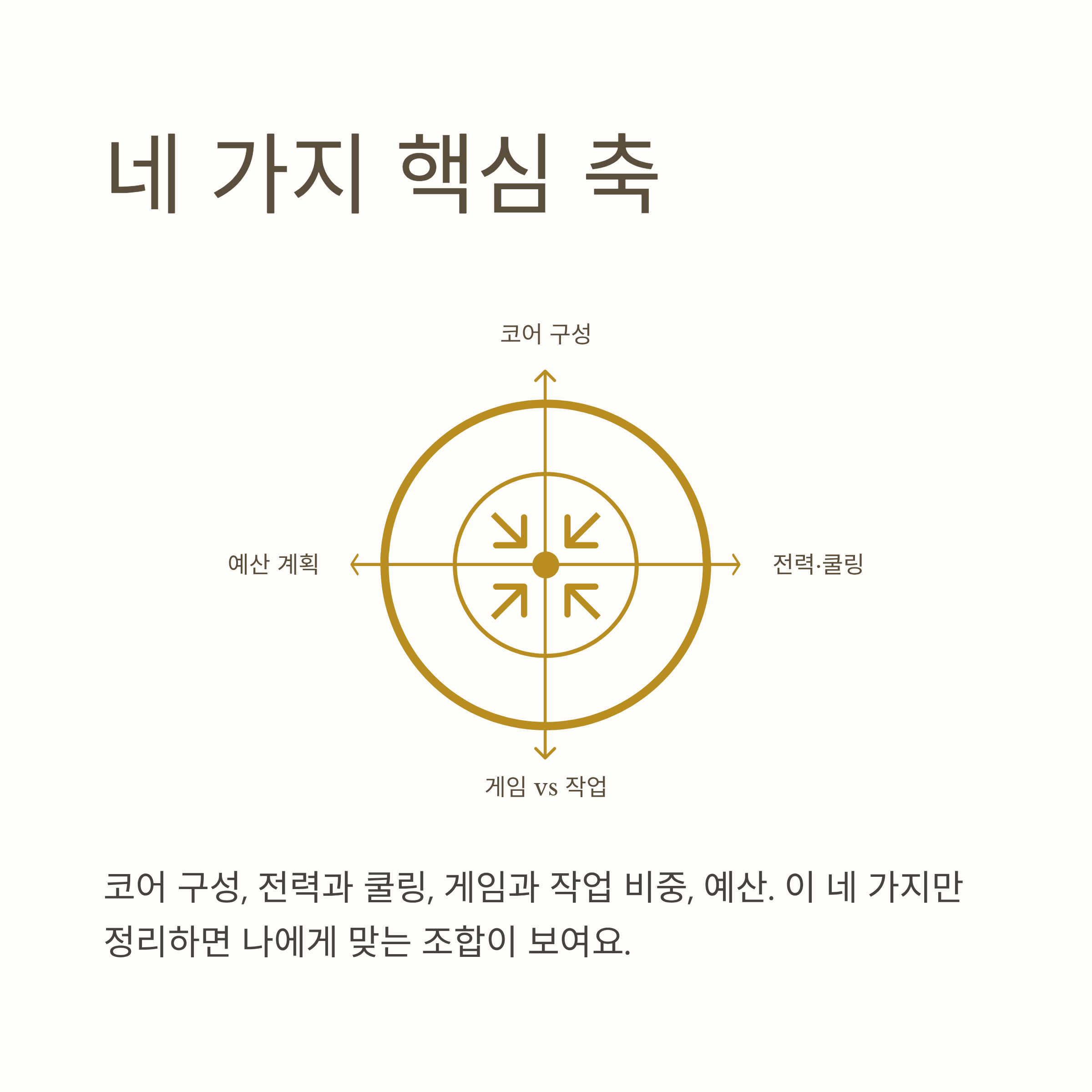 이런 내용을 한 장짜리 표로 정리해 두면 나중에 부품을 교체할 때도 기준이 흔들리지 않아요. CPU, 그래픽, 메인보드, 쿨러, 파워, 메모리, SSD 예산을 각각 적어 두고 실제 구매가와 비교하면, 어디서 비용을 아꼈고 어디에 힘을 줬는지 한눈에 보이거든요. 이 카드 하나만 저장해두면 나중에 업그레이드할 때 정말 편하다고 느끼실 거예요.
