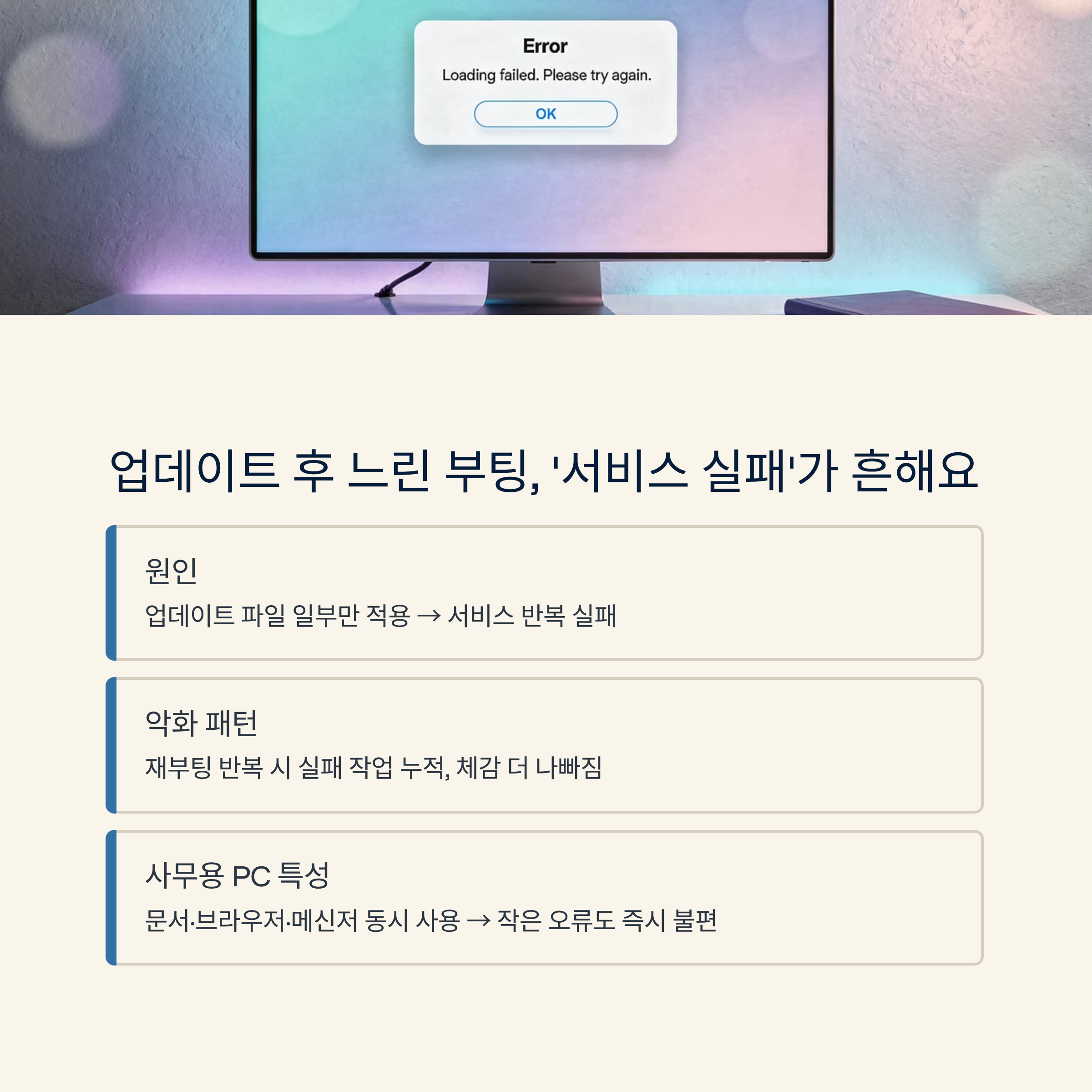 🧾 업데이트 후 느려진 부팅은 ‘서비스 실패’가 흔해요