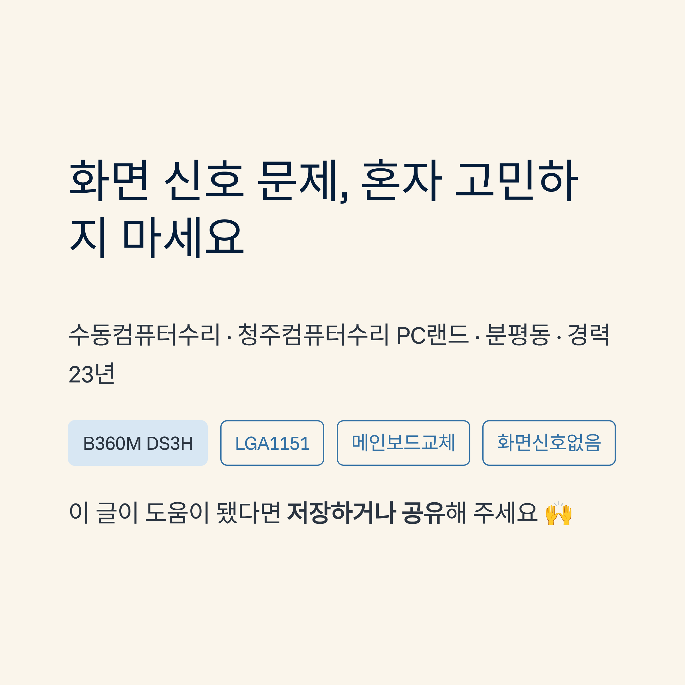 수동컴퓨터수리처럼 화면 신호 문제로 접수되는 케이스는, 원인만 정확히 잡으면 복구 속도가 빨라지는 편이에요.