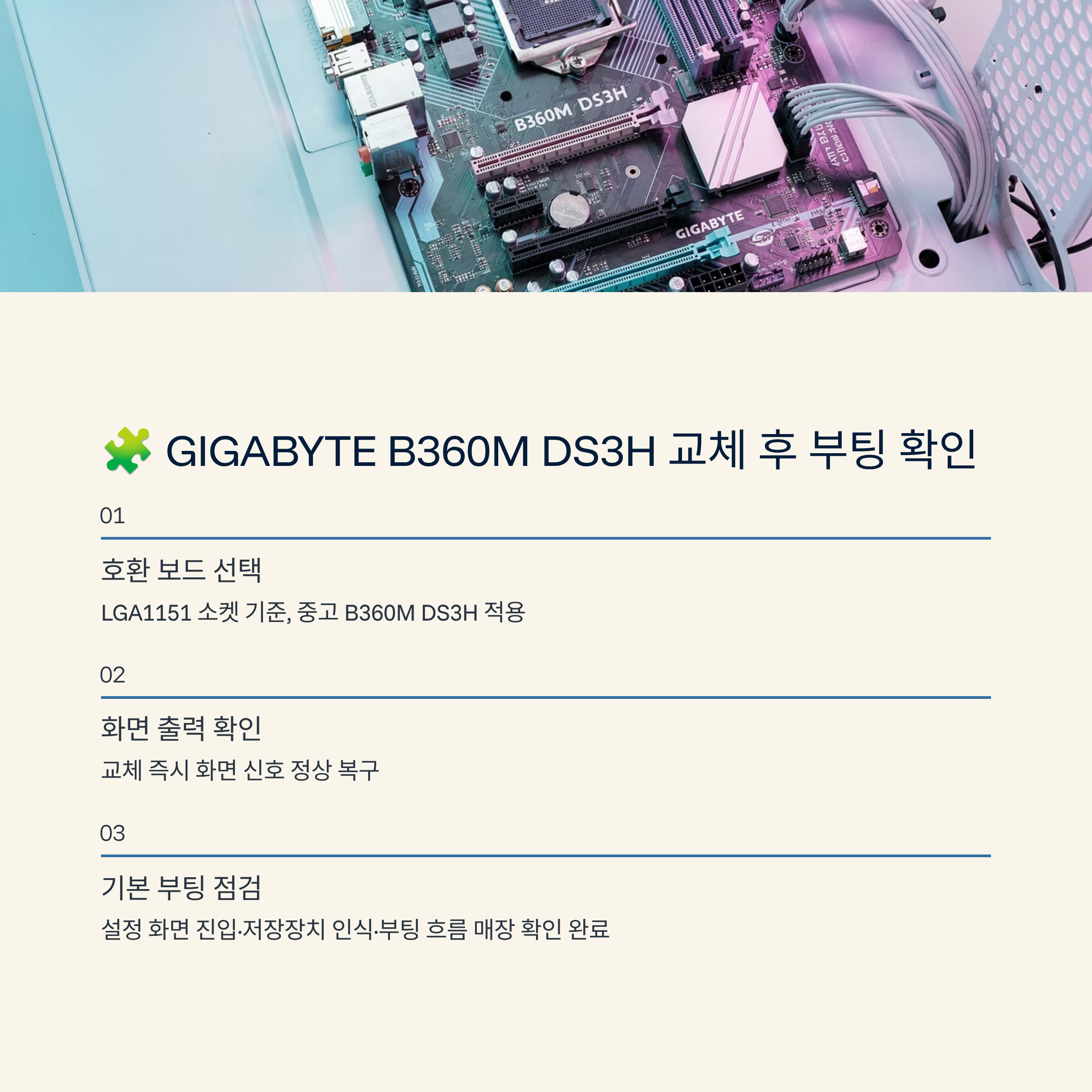 보드 교체 후에는 화면 출력이 즉시 올라오는지부터 확인했어요.