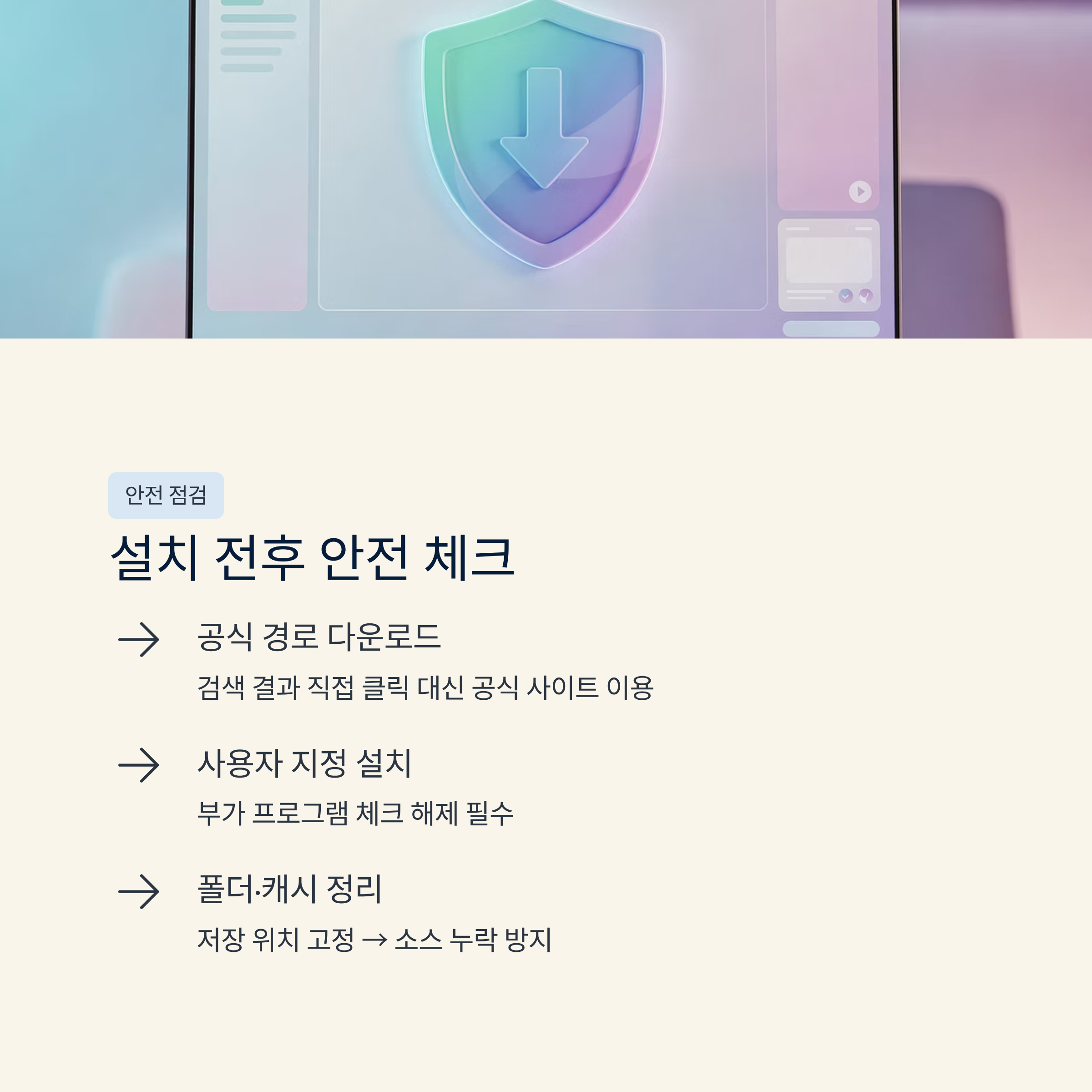 설치 후에는 기본 저장 폴더와 캐시 위치를 한 번 정리해 두면 좋아요.