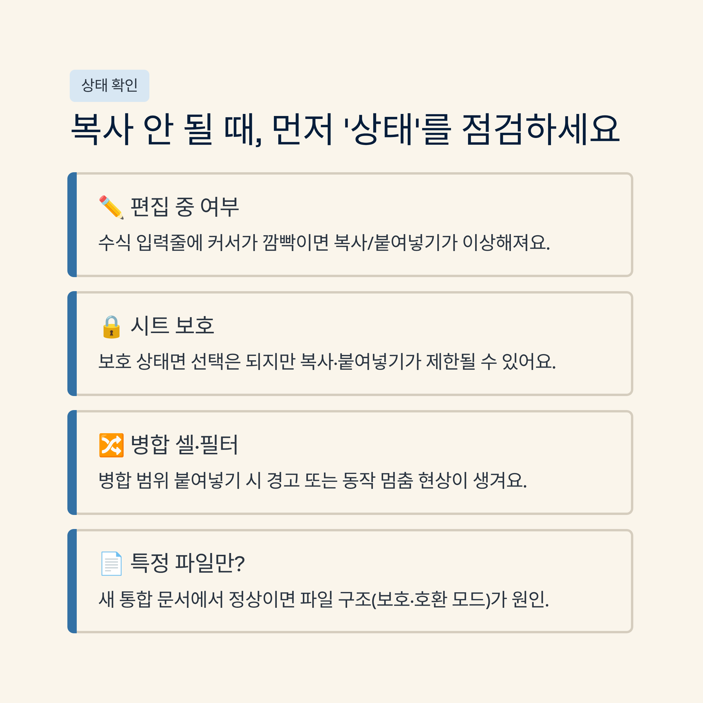 🧩 복사가 안 되는 순간에 가장 흔한 ‘상태’부터 정리해요