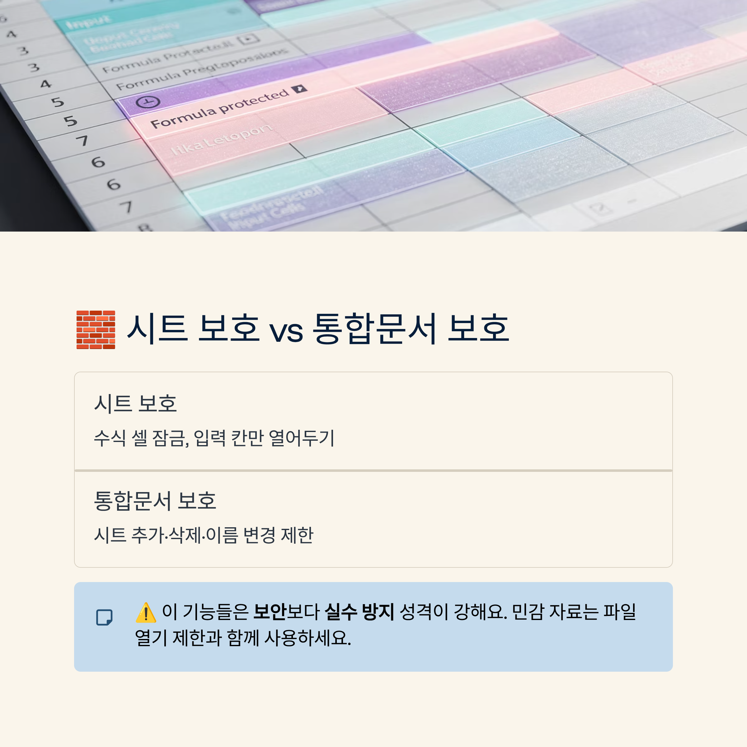 🧱 시트 보호와 통합문서 보호는 “작업 범위”를 잠가요