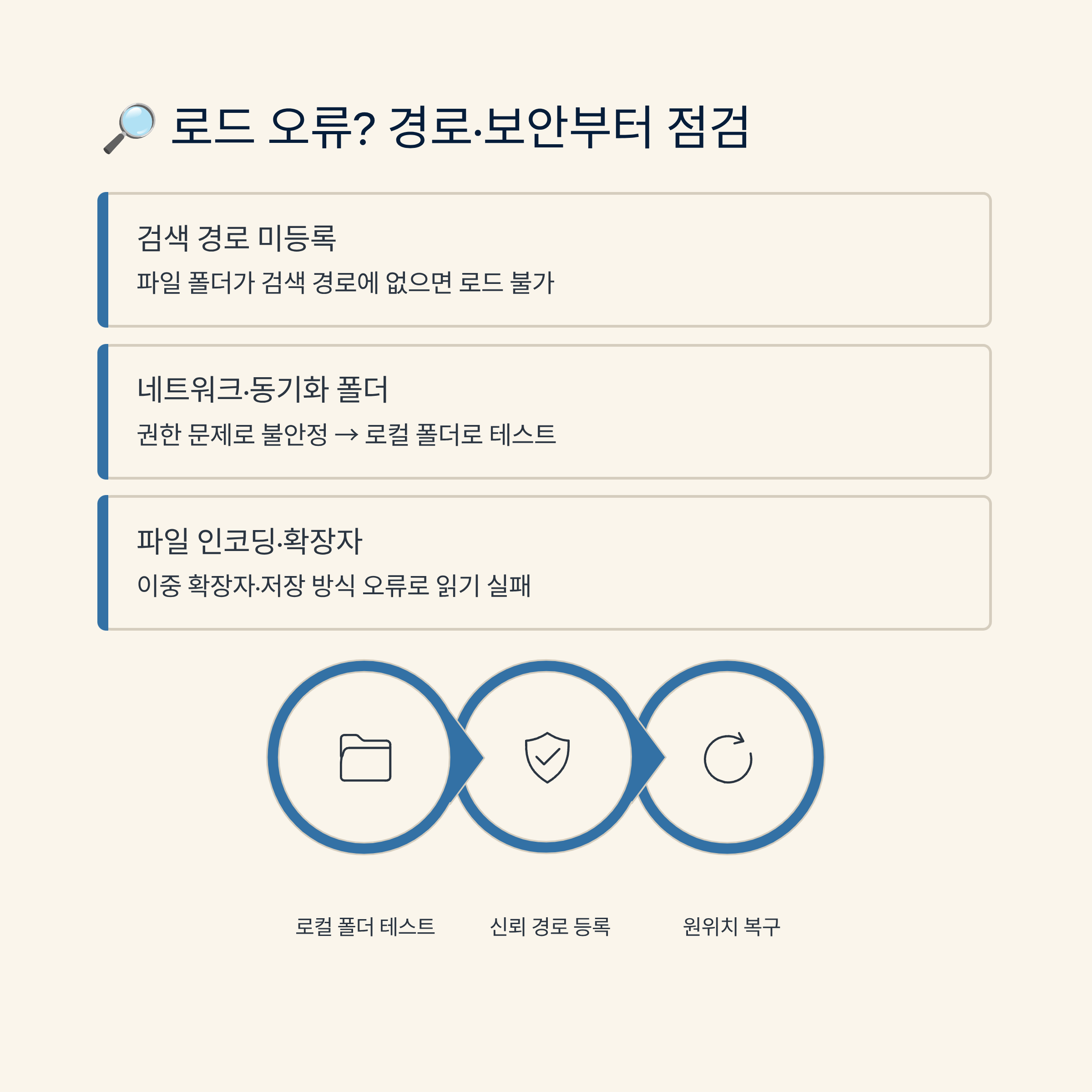 중간 정리로, 로드 문제는 대부분 “폴더 접근성”과 “신뢰 설정”에서 끝나요.