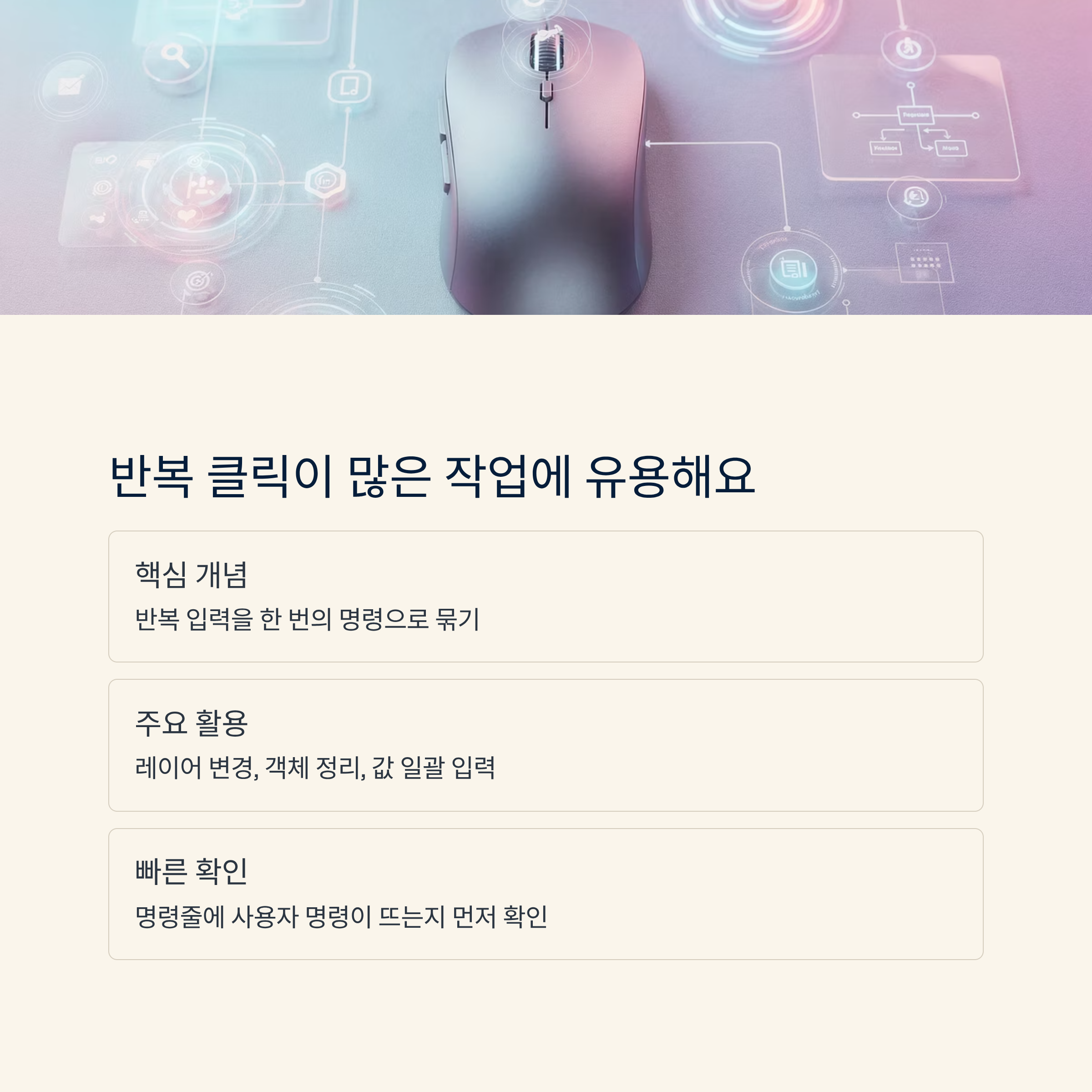 핵심은 사람이 매번 하던 입력을 한 번의 명령으로 묶는 거예요.