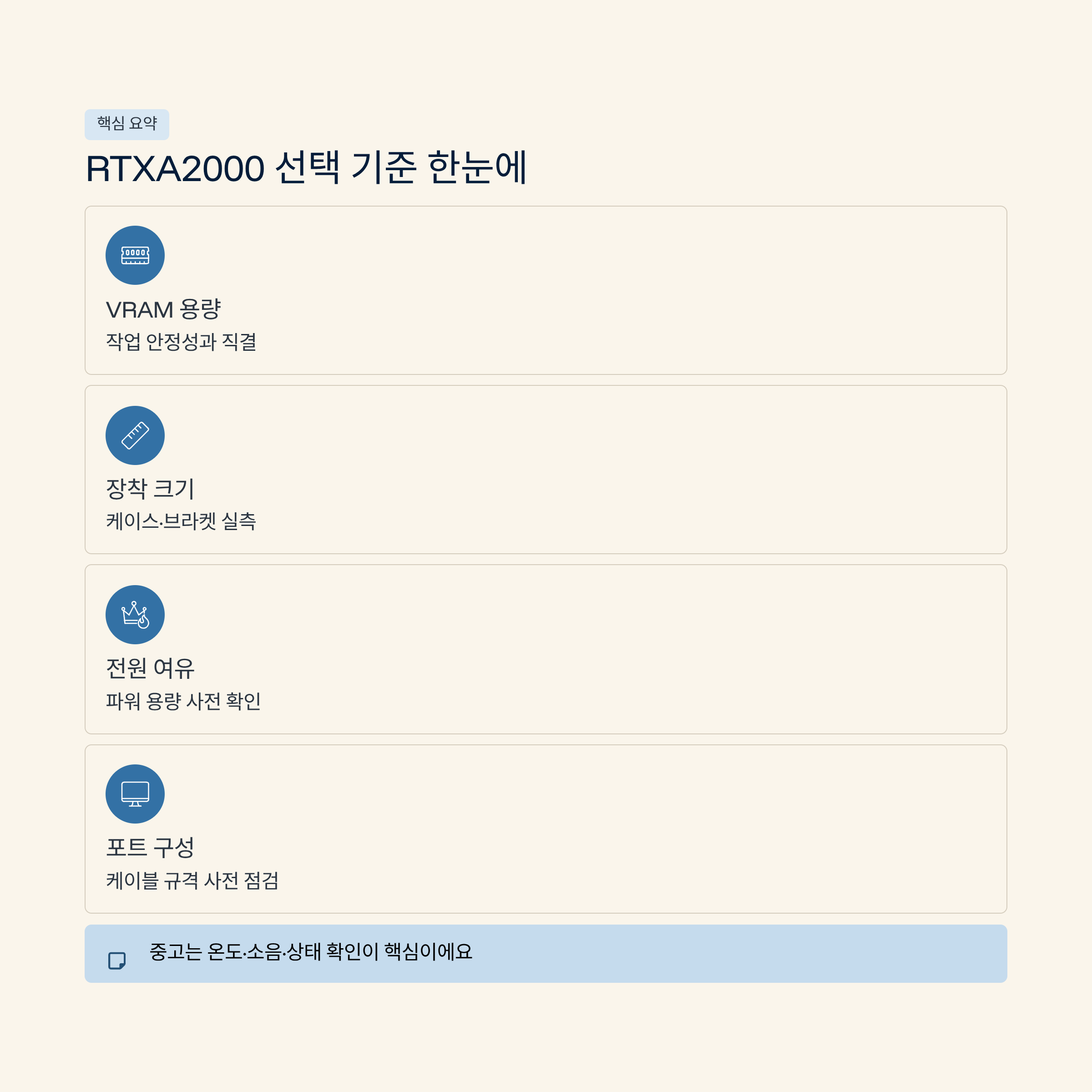 🔍 RTXA2000을 볼 때 VRAM 여유와 작업 유형을 같이 맞춰야 해요
