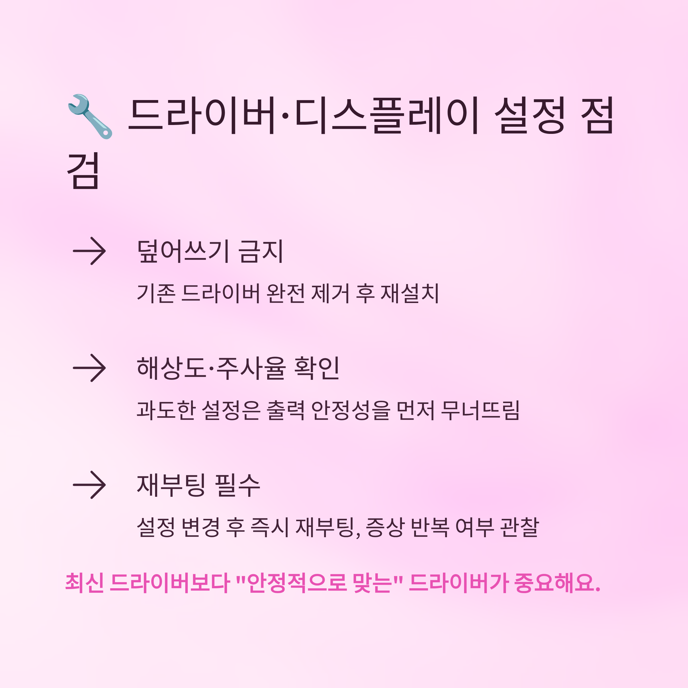 체감 저하는 드라이버가 “최신이냐”보다 “안정적으로 맞아떨어지냐”가 더 중요해요.