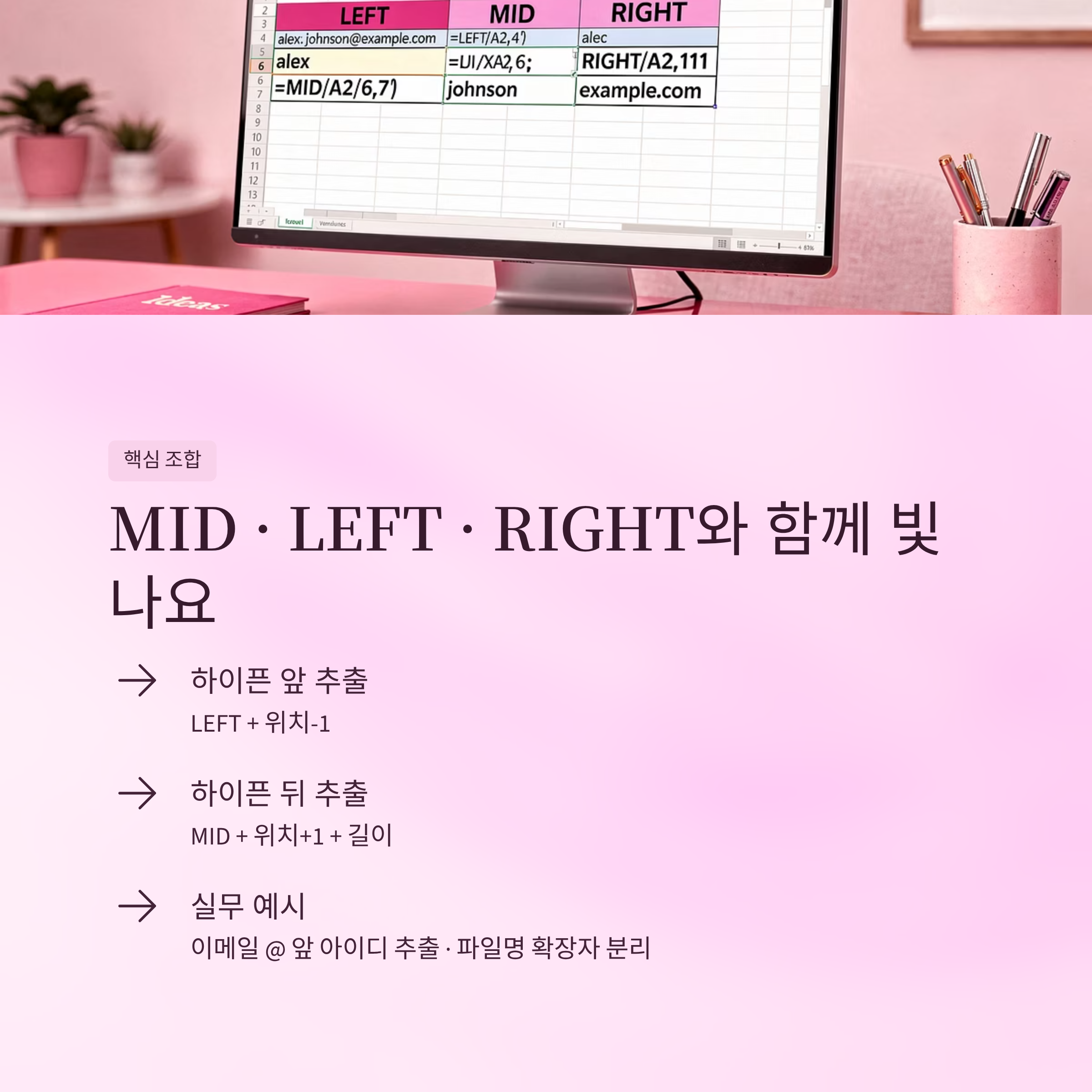 🧩 엑셀FIND함수는 MID·LEFT·RIGHT 조합에서 진짜 빛나요