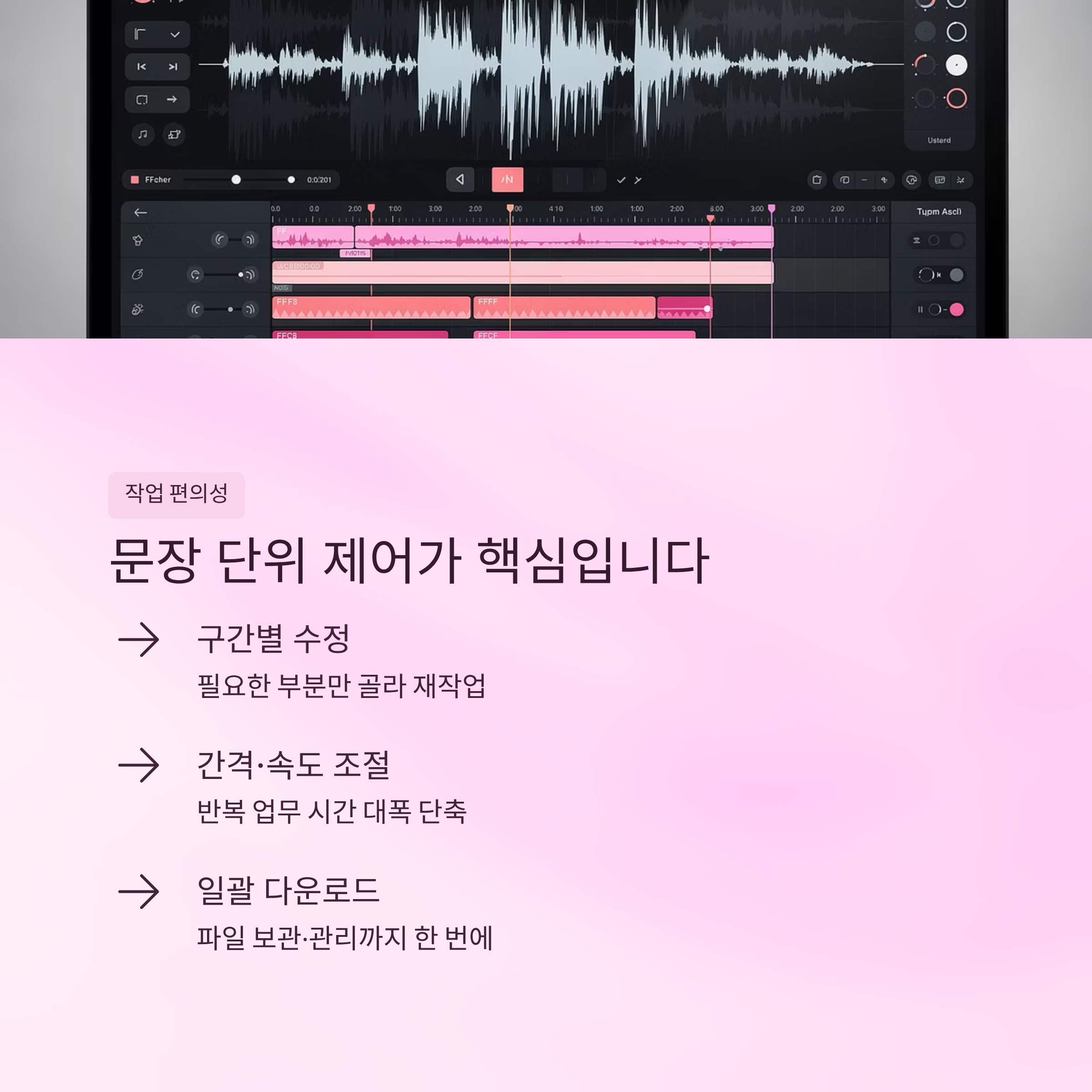 | 반복 작업에도 편한가요? | 문장 단위 제어와 다운로드 흐름이 있으면 편해집니다. |
